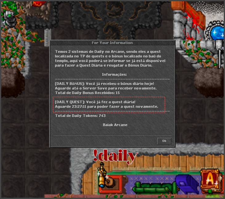 → Temos o sistema de Daily Bônus e Daily Quest no servidor.