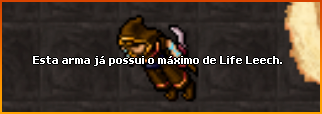 Você não pode adicionar 2 atributos iguais. Cada arma possui 2 slots para imbuement. O primeiro slot é designado ao Life Leech, o segundo slot é para o Mana Leech.