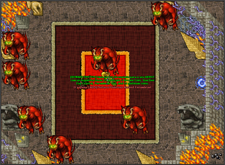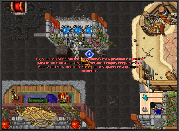É importante ressaltar que o portal permanecerá aberto até que Ancient Ferumbras seja derrotado. Portanto, caso você encontre o portal ainda aberto, isso significa que o Boss ainda está vivo e desafiadoramente à espera de corajosos aventureiros que desejam enfrentá-lo. Aproveite essa oportunidade única e teste sua coragem contra um dos maiores desafios do Baiak Arcane.