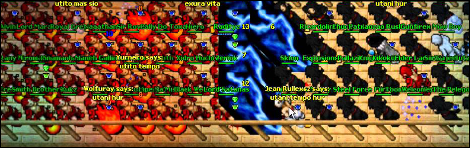 Os jogadores entram no teleport e aleatoriamente são colocados em um time, sendo o time Vermelho e o time Preto.